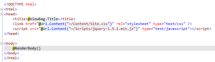 Quando criamos um novo projeto ASP.NET MVC 3, temos por padrão a layout page _Layout.cshtml (ou vbhtml no VB.NET) criada em \Views\Shared. O conteúdo da mesma será algo como: