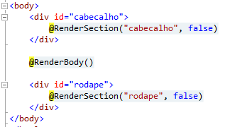 Veremos como isso funciona definindo duas seções na nossa layout page: